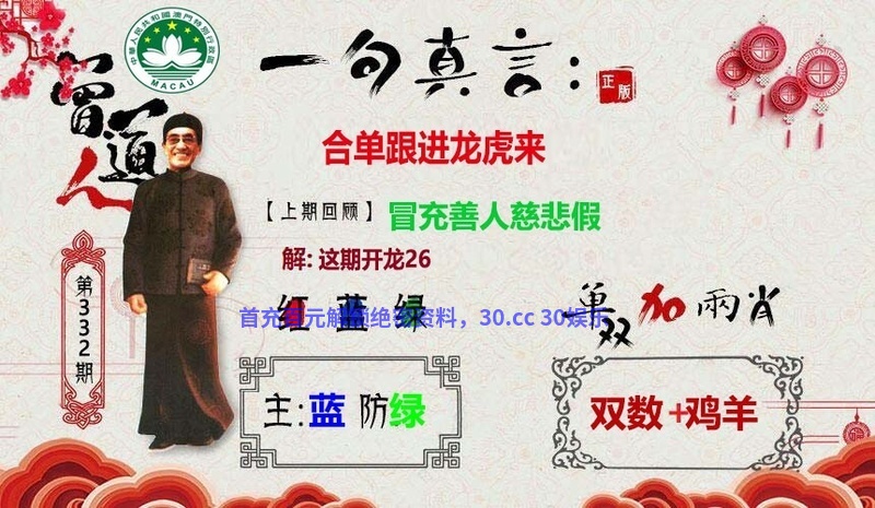 | 332期③肖 | 狗龙羊 | 开:龙26中 |